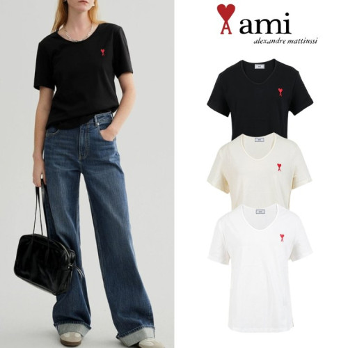 • AMI 아미 유넥 트임 반팔 티셔츠