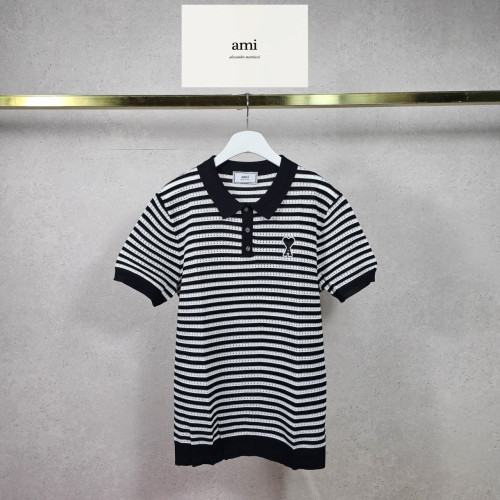 AMI 아미 스트라이프 버튼 카라 니트 하프 3COLOR > 반팔
