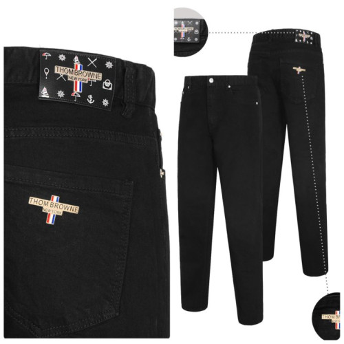 THOM BROWNE 톰브라운 메탈 레더패치 블랙진